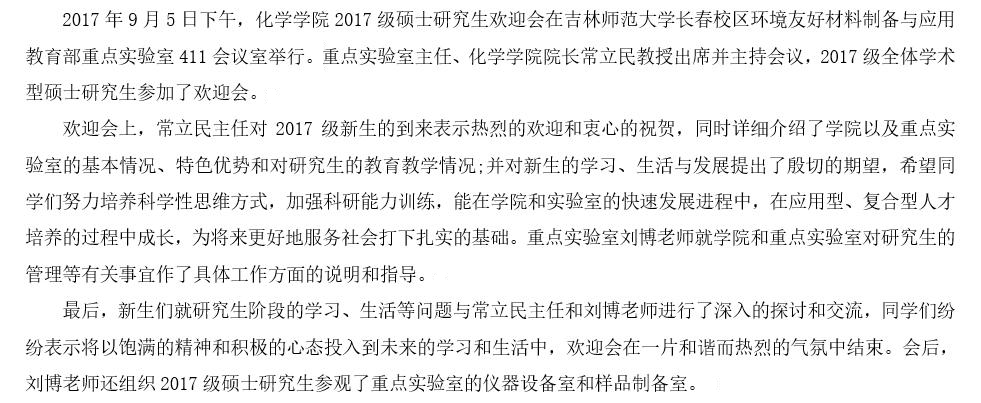 化学学院2017级硕士研究生欢迎会在长春校区召开