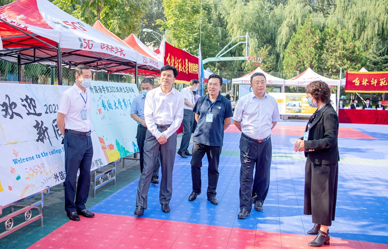 9月4日上午,党委书记王喜库、校长杨小天带队来到报到现场检查指导迎新工作,慰问广大迎新工作人员,并与新生亲切交流。