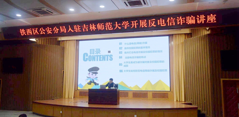 讲座由铁西区公安分局刑警大队研判中队青年警官张家郡主讲。他针对高校学生安全防范意识相对薄弱的现状,从电信网络诈骗的定义入手,结合四平市高校校园电信网络诈骗的典型案例和四平市公安机关打击电信网络诈骗的基本情况,介绍了当前电信网络诈骗的特点,以及大学生易成为被诈骗对象及校园犯罪目标的成因,并根据不同的诈骗形式和犯罪手段,详细阐述了大学生对电信诈骗的辨别方法和防范策略。