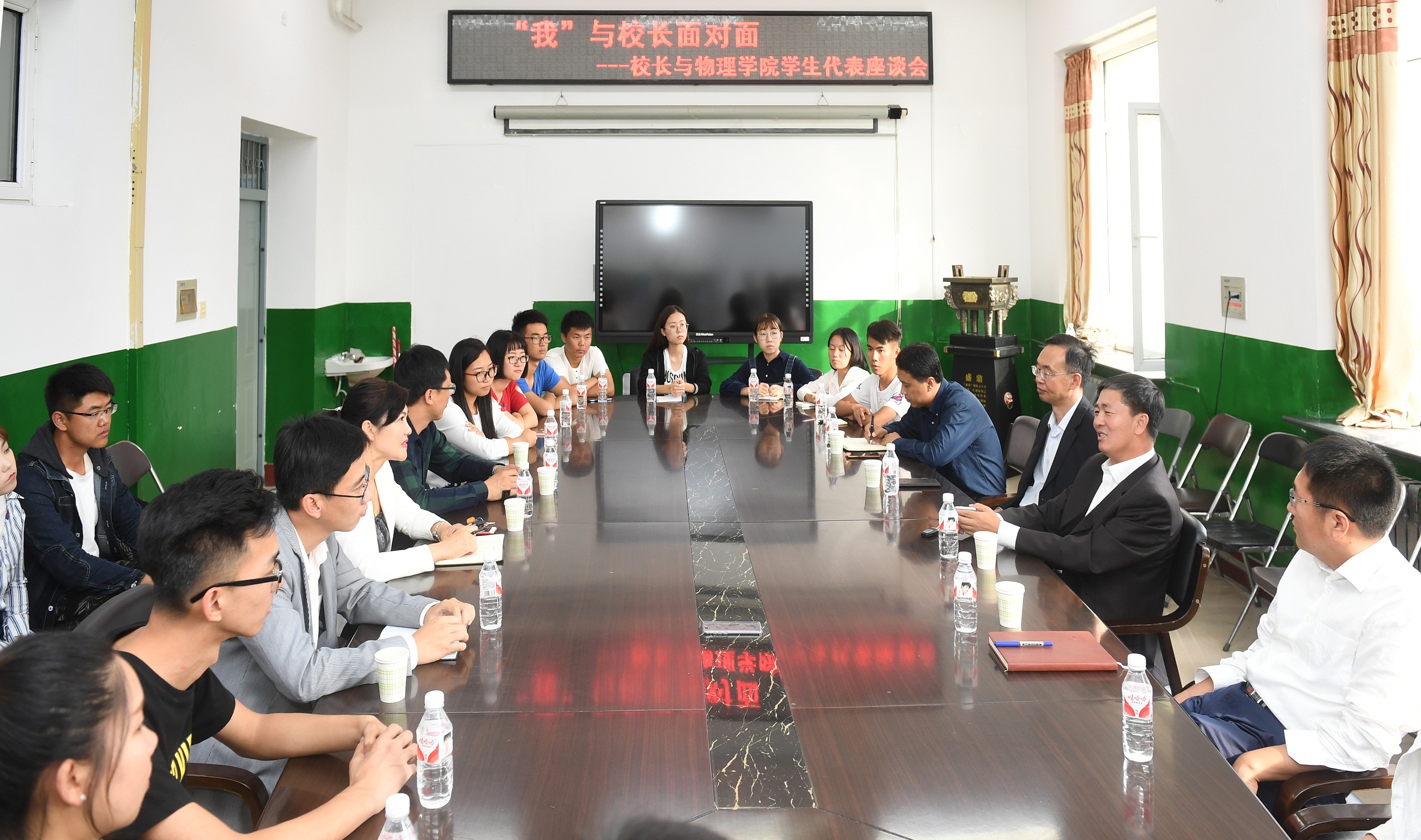 近日,“我与校长面对面”主题座谈会在物理学院会议室举行。校长杨景海出席座谈会,教务处、学生工作处、物理学院等部门负责人及物理学院30余名学生代表参加了座谈会。
