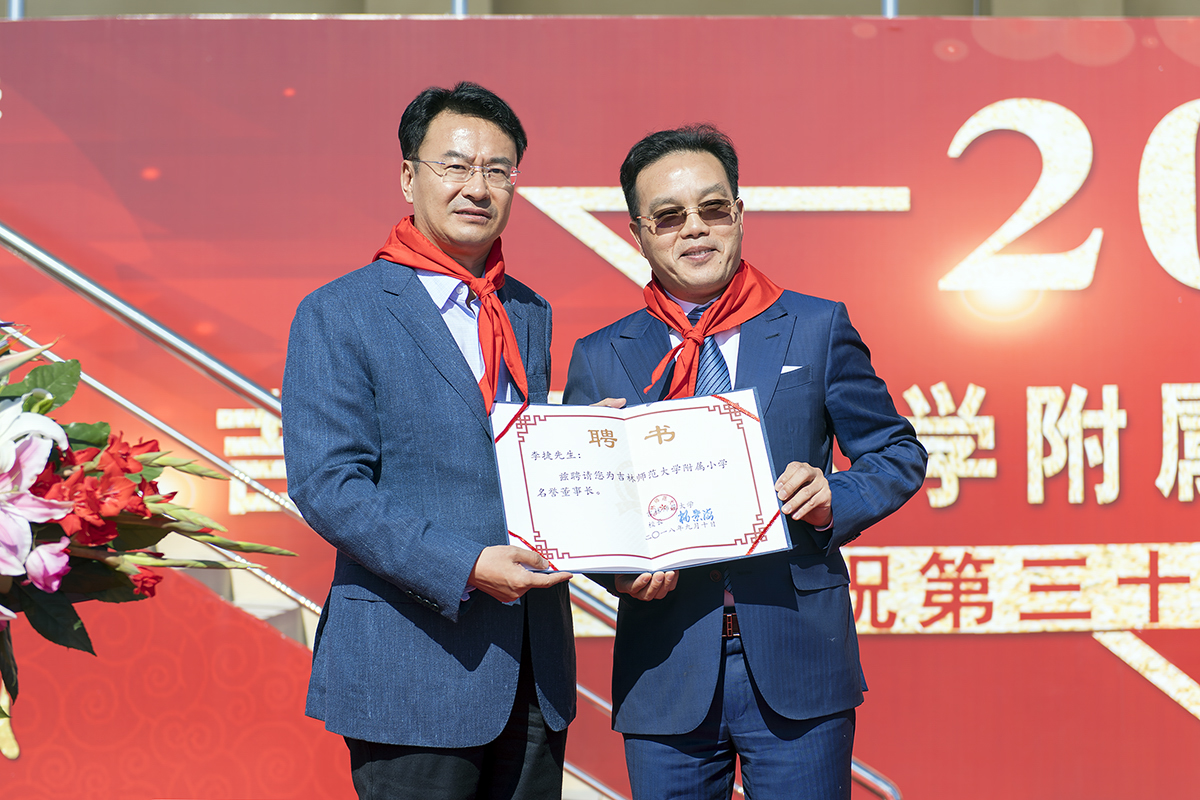 附中附小董事长吕秉善为加利利集团副董事长梁丽华女士颁发名誉校长聘书,佳源东方明珠总经理孙政先生宣读捐赠决定,加利利集团总裁陈德概先生和师大附中附小董事长吕秉善签署捐赠协议。师大附中附小负责人致辞并宣读教师节表奖决定。