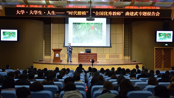 12月5日,学校在图书馆报告厅举办“大学·大学生·人生——‘时代楷模’‘全国优秀教师’曲建武专题报告会”。学校相关职能部门工作人员、全体辅导员及2018级学生代表聆听了报告。