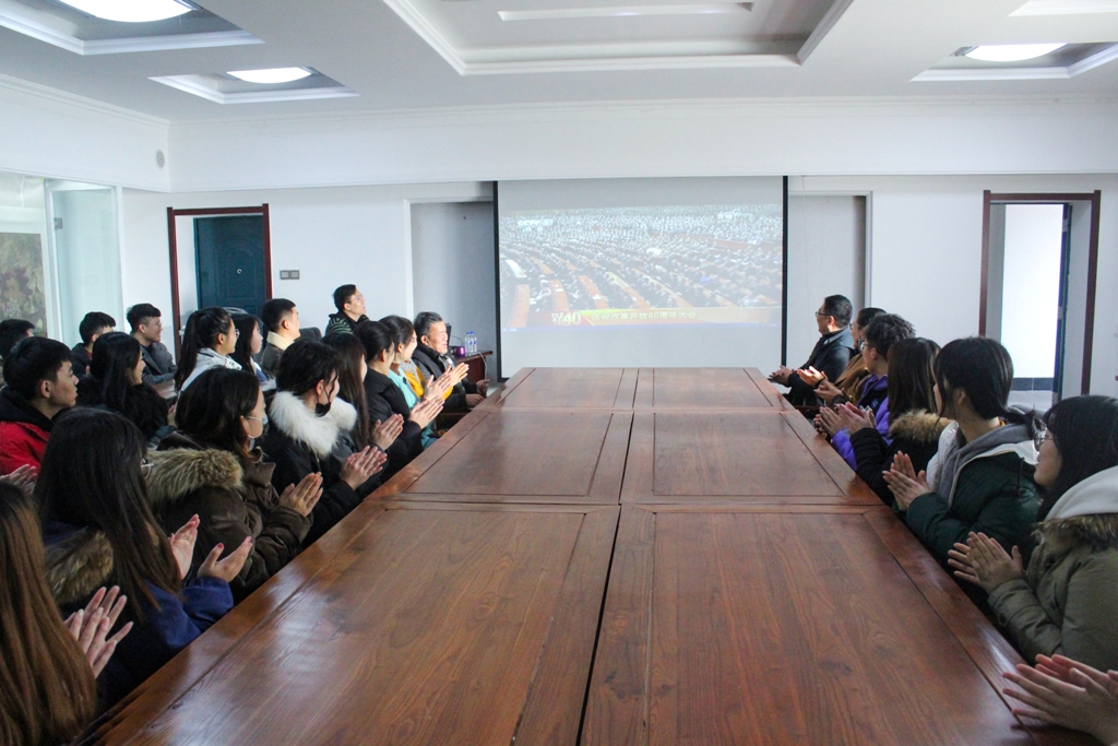 12月18日上午10时,庆祝改革开放40周年大会在北京人民大会堂隆重举行。中共中央总书记、国家主席、中央军委主席习近平出席大会并发表重要讲话。学校领导班子成员、机关部门负责人在第一教学楼八楼会议室集中收看大会现场直播,各学院分别组织师生员工通过电视、网络收看大会盛况。