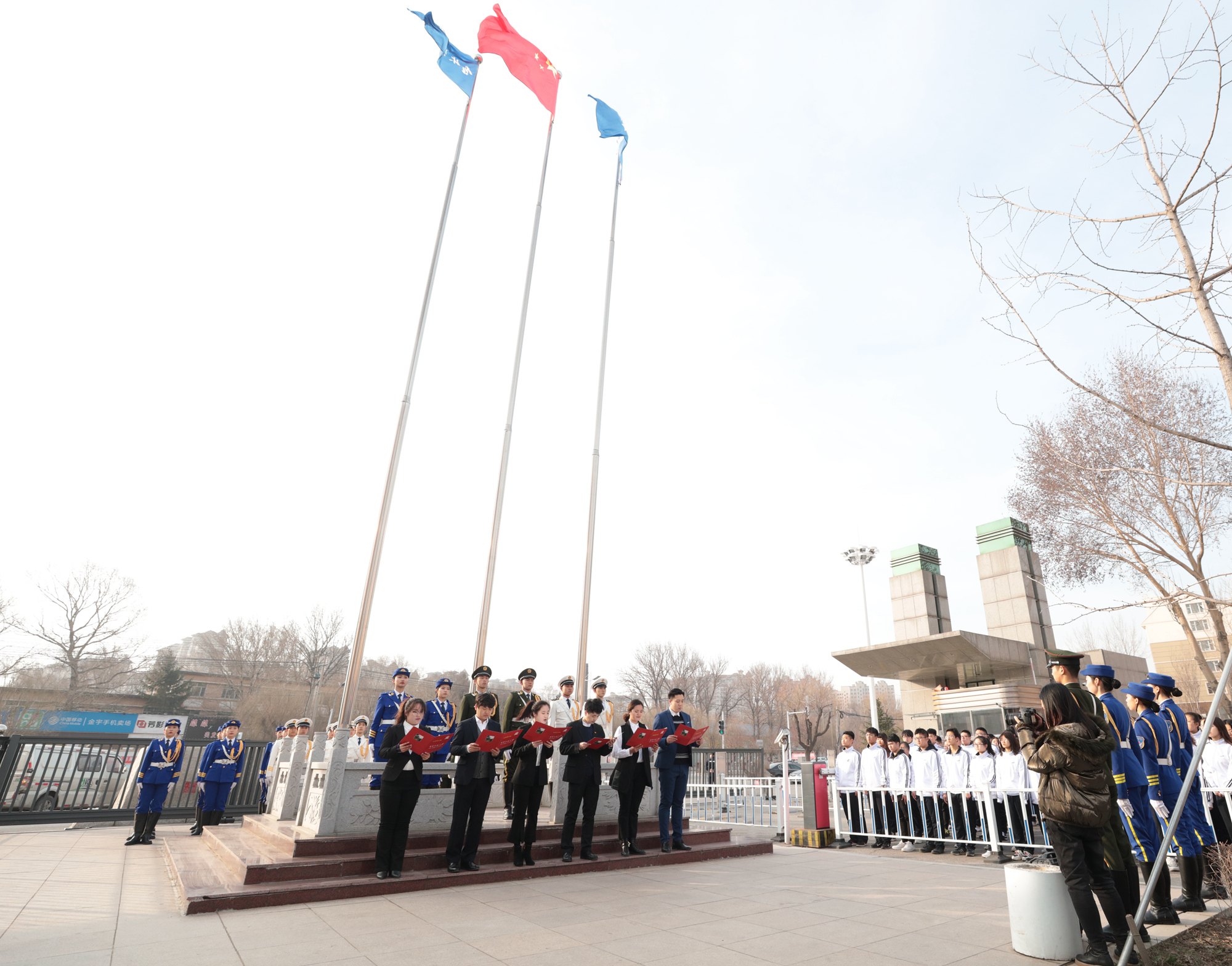 升旗仪式后,学生工作部负责人作了发言。6名新入职辅导员代表在国旗下饱含深情地齐声朗诵《青春中国》,以投身思想政治教育事业的最炽热拳拳赤子心,坚定继承先烈精神的决心,立志为祖国人才培养奉献无悔青春。
