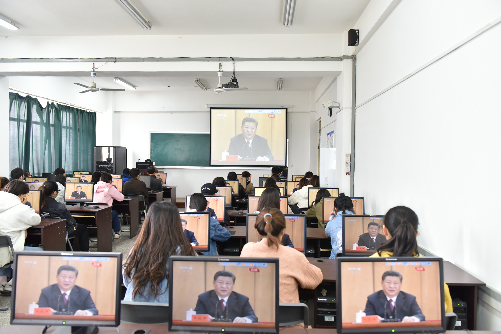 4月30日上午10时30分,纪念五四运动100周年大会在北京人民大会堂隆重举行。中共中央总书记、国家主席、中央军委主席习近平出席大会并发表重要讲话。学校领导班子成员、机关部门负责人在第一教学楼八楼会议室集中收看大会现场直播,各学院分别组织青年教师、学生骨干、团员、团干部通过电视、网络收看大会盛况。