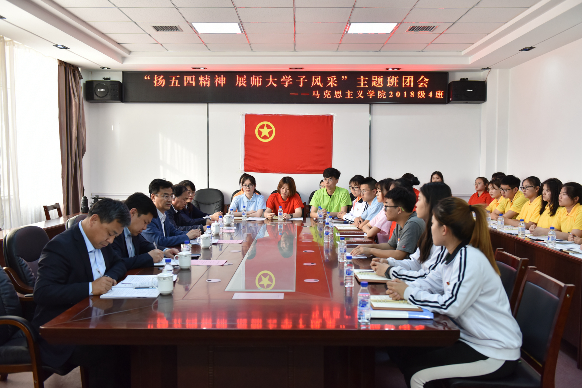 5月16日,威尼斯官网马克思主义学院思想政治教育专业2018级4班召开“扬五四精神,展师大学子风采”主题班团会。校党委书记许才山参加班团会并与学生们亲切交流,马克思主义学院及学校相关职能部门负责人参加活动。
