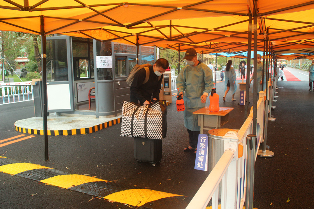 8月19日,学校按照“错区域、错层次、错时、错峰”的基本原则,组织四平、长春两个校区学生有序返校。校党委书记许才山、校长杨小天带队实地检查指导学生返校和疫情防控工作,亲切慰问学生和工作人员。
