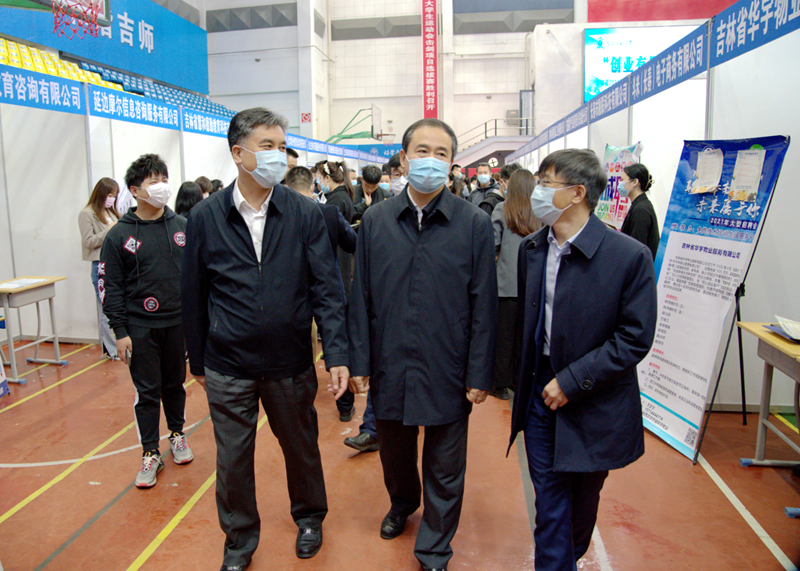 吉林省教育厅党组成员、副厅长许世彬,校党委书记王喜库一行到招聘会现场指导工作