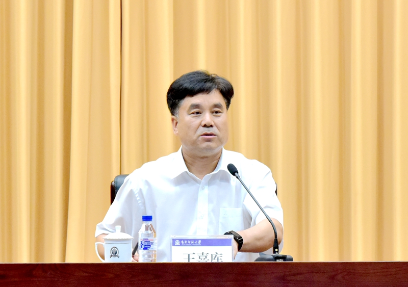 7月9日,学校在图书馆报告厅召开2021年暑期重点工作部署会。校党委书记王喜库、校长杨小天,党委副书记祖国华、刘万民,党委常委、纪委书记、监察专员侯奎岩,党委常委、副校长李海波、曲殿彬、张作岭、车广波,副校长赵经武出席会议,全校副处级以上干部参加会议。车广波主持会议。