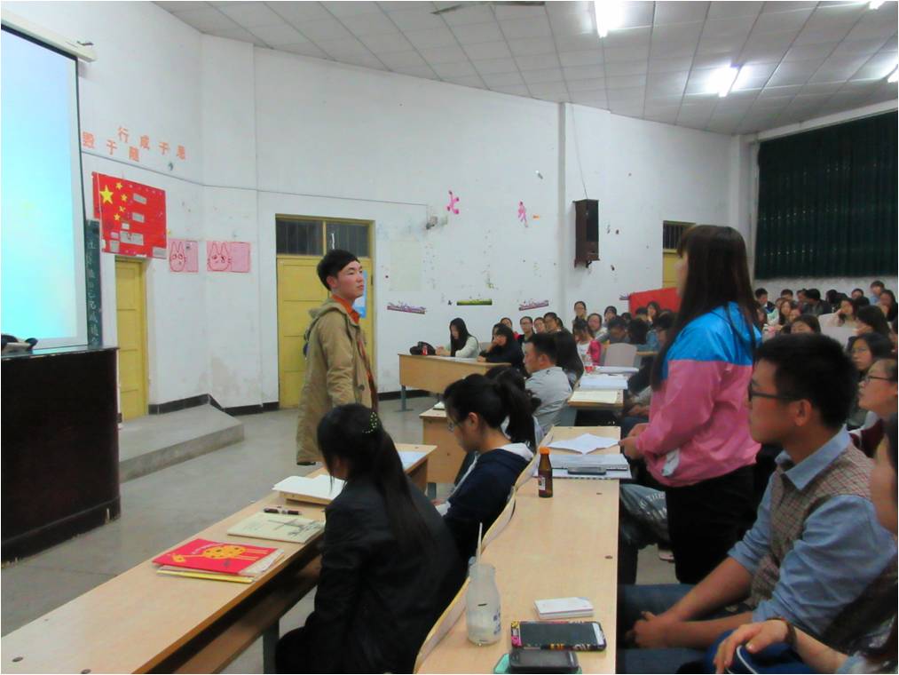 为让同学们更好的理解教育见习活动的目的,更加明确要成为一名中学语文教师应该具备的素质和要面临的挑战,4月14日晚,文学院邀请长春一中语文教师,我院2014届毕业生刘学同学在六教6103教室为12级汉语言文学系学生作了一场精彩的报告。本次报告的主题为“如何应对就业,如何讲好第一堂课”。文学院12级该专业全体同学参加本次报告会。