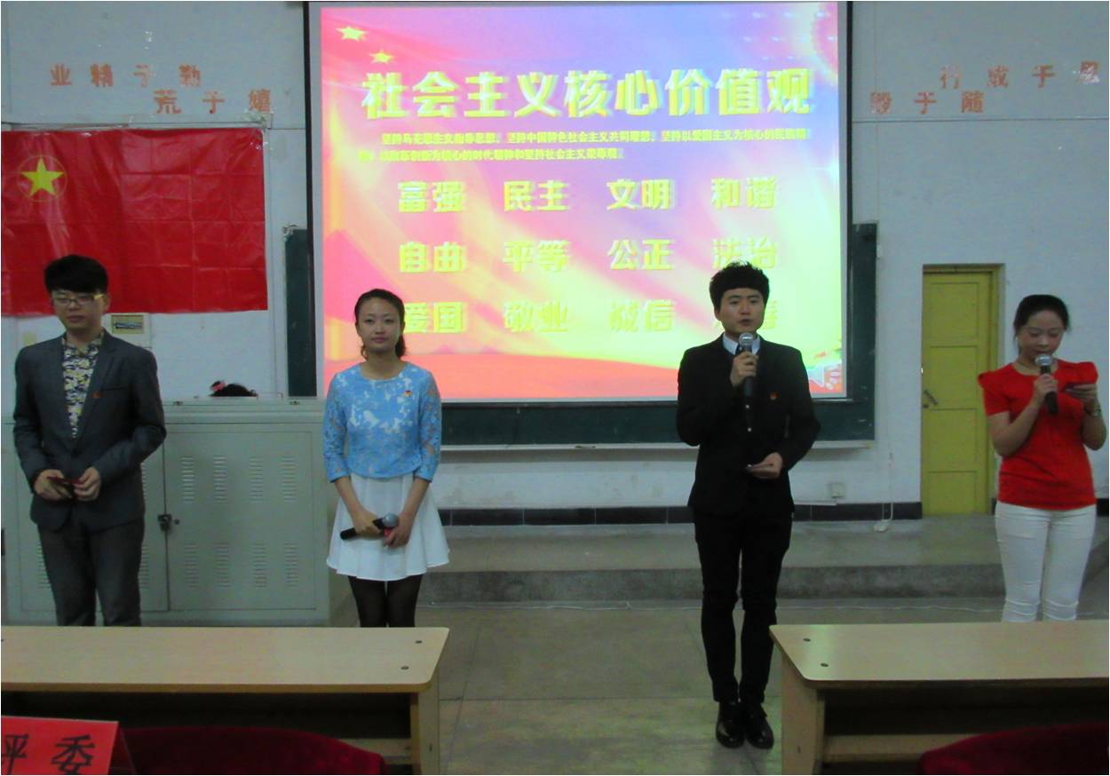 5月8日晚,文学院“我为社会主义核心价值观代言”主题团日活动暨演讲比赛在6103教室拉开帷幕。列席本次活动的老师有原职教部教师裴宝祥老师、文学院殷晶波老师、孙宝亮老师以及团委书记周永志老师 。各兄弟院系的学生干部以及文学院13级全体同学参加本次活动。