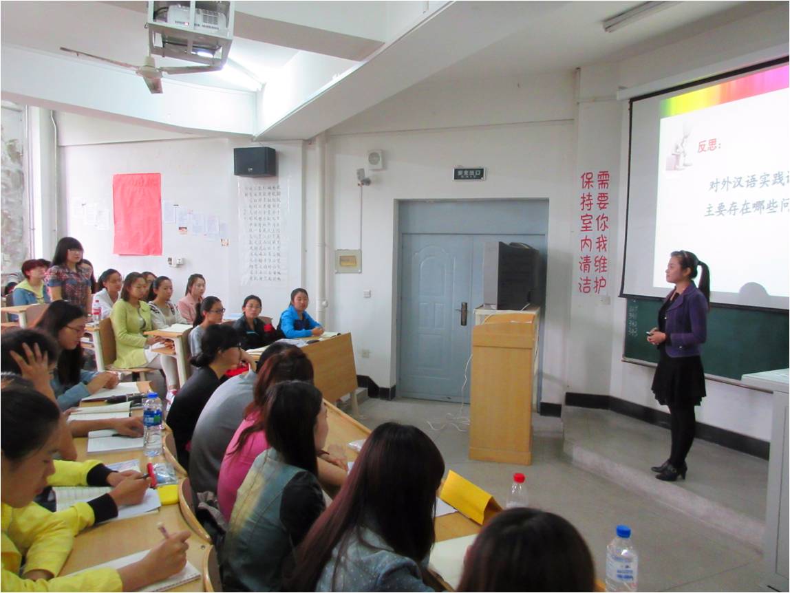 5月14日早八点,陈薇老师在10509教室为12级汉语国际教育专业的学生开展了一节题为《对外汉语教学案例分析》的教研公开课。院长李秀云,副院长宁国利等文学院部分老师前来考察学习。